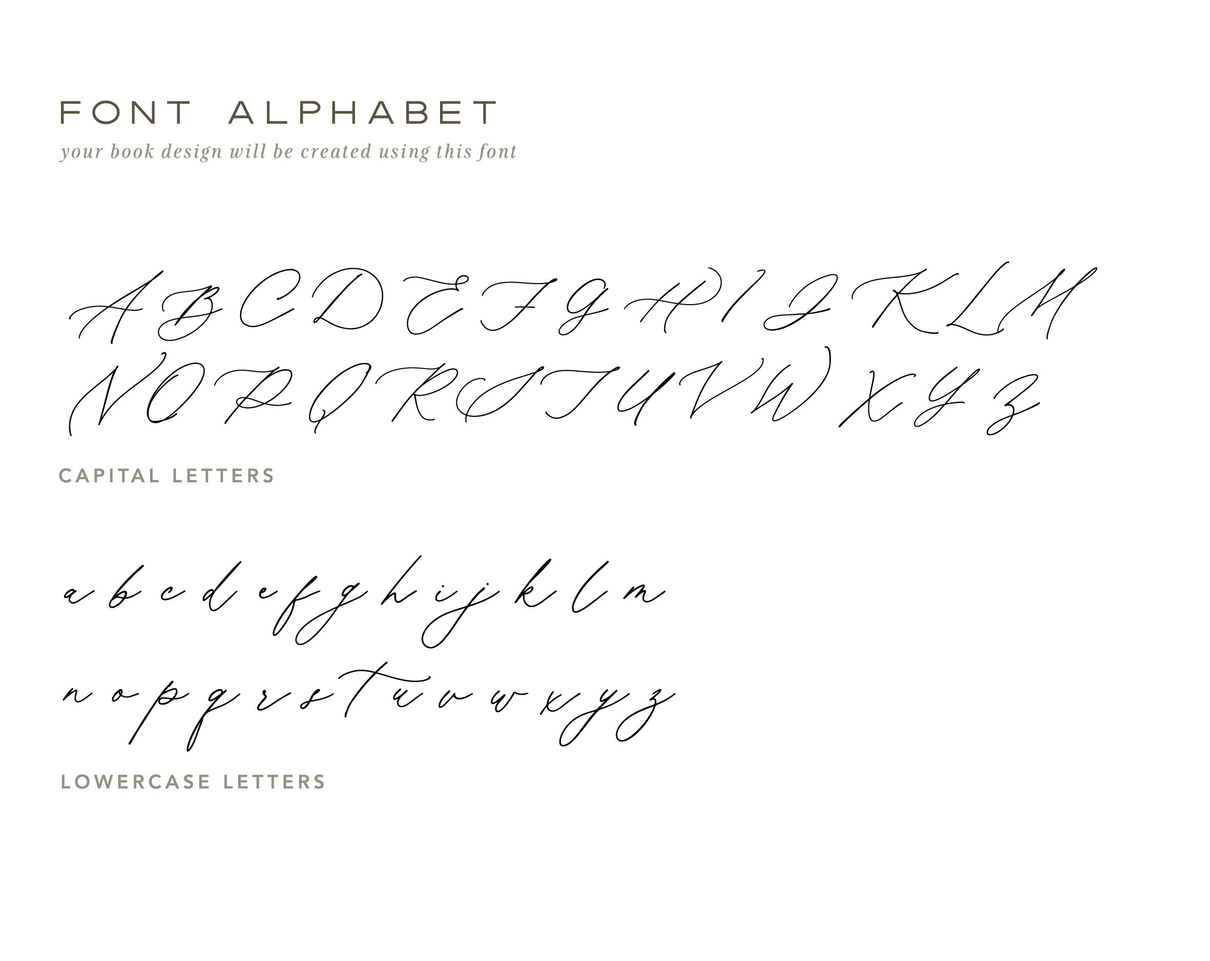 Your guest book will be created in the fonts and layout shown in the product photos.